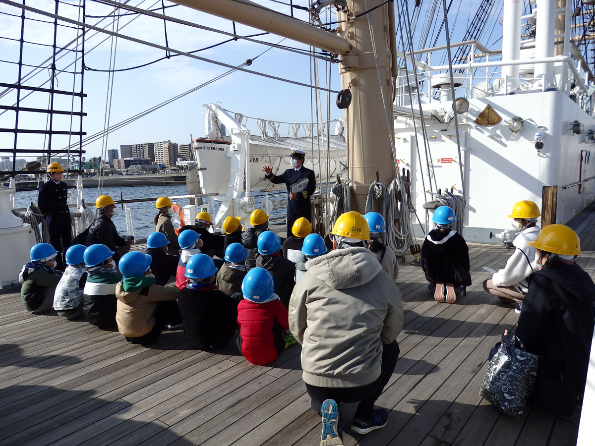 港内停泊中の帆船「海王丸」に乗船し、船内設備の見学、船にまつわる講義、舵輪回し、ロープワーク、ヤシ摺りなどを体験しながら、海や船に関する理解・関心を1日で深めることができます。